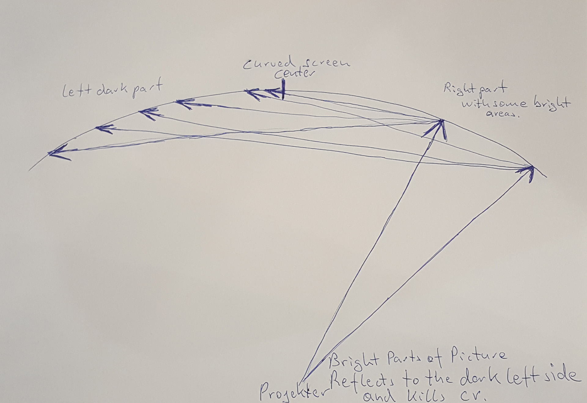 So in cinema this is not a big issue and on top cr. in a cinema is typically in the 500-1500:1 cr. range because of Exit sign and many other things so a curved screen will not change this very much.