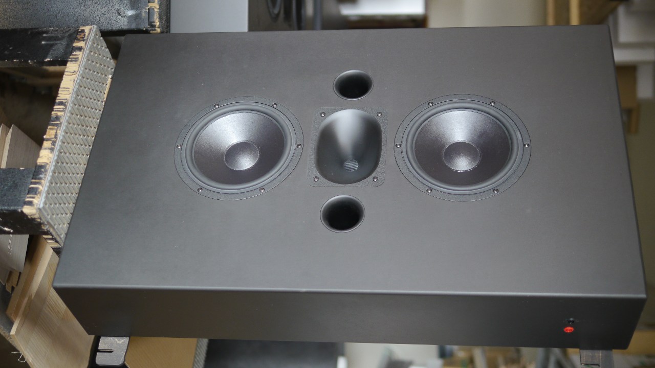 • New very flat (only 18 cm!) custom develop 3 Front Speakers that comes behind the new V6 screen are almost ready see pictures.