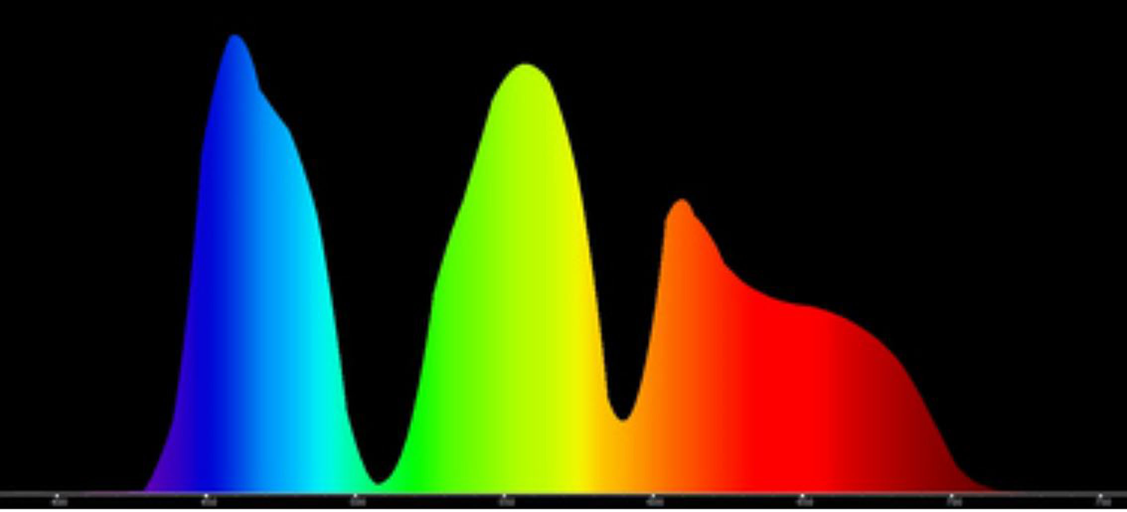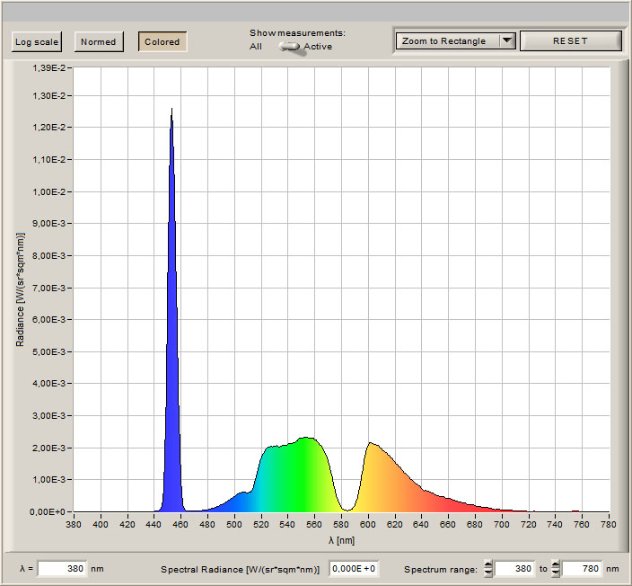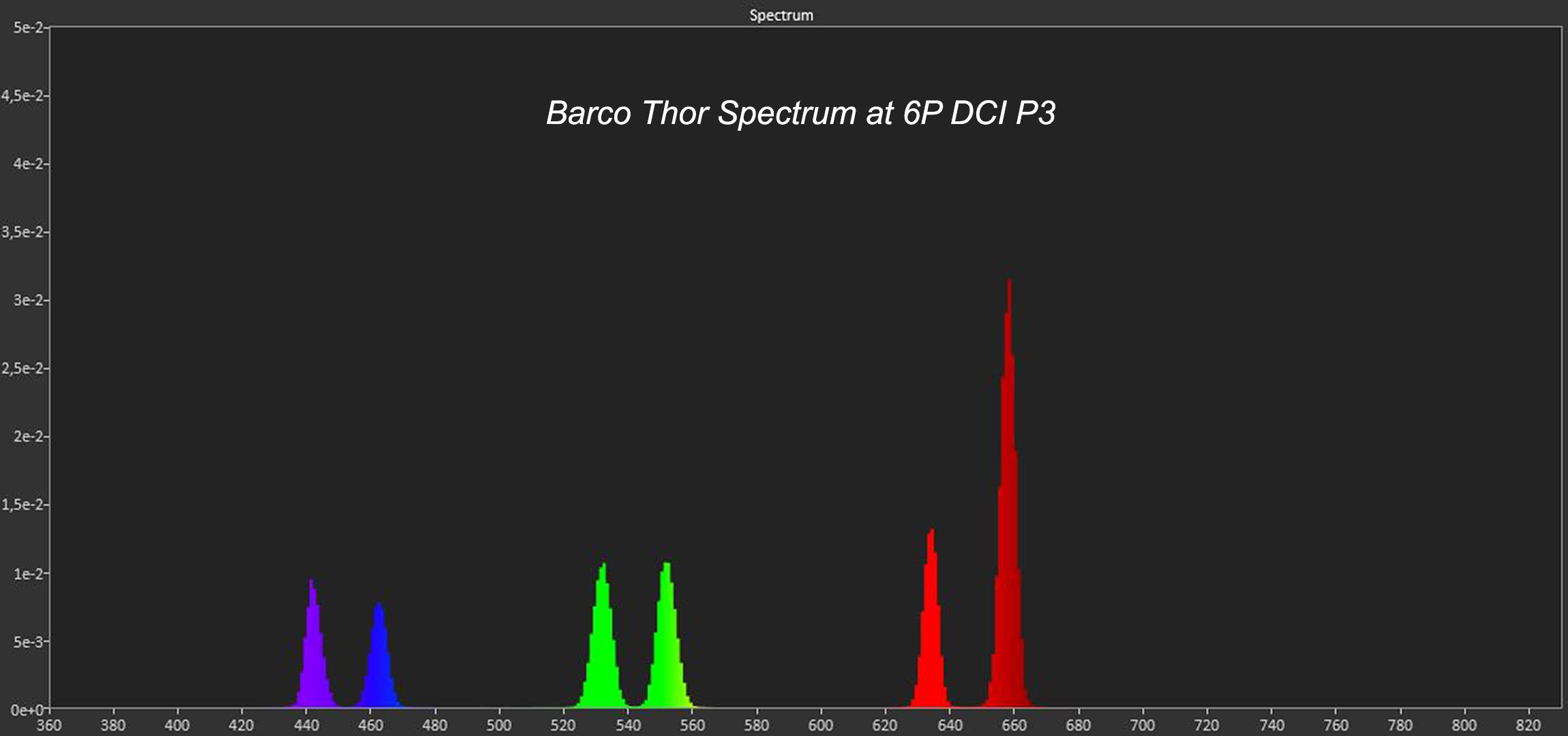 These R G B parts of the lightlooks like a reversed bell, when you measure it from the projector and these parts are about 30-50 nm wide, see the pictures down below.