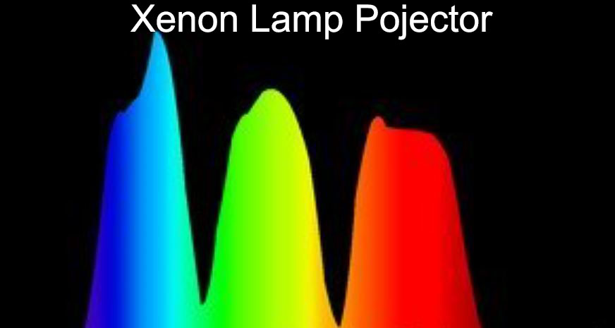 Xenon based projector have almost all 3 colors at similar levels and dark red is very strong.