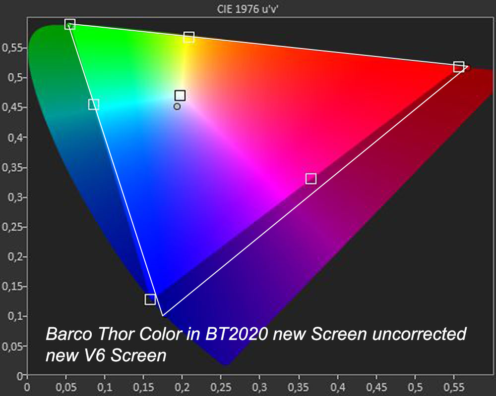 When I show visitors the Rec. 2020 red the Barco Thor can do when I playback the hidden test pictures from Sony UHD Disc most are shocked as they never see such a deep saturated red before.