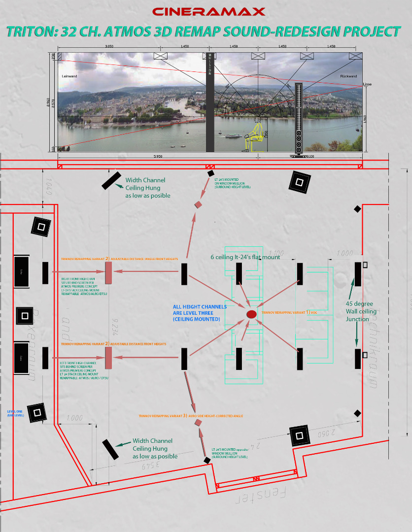 Digest my proposed implementation of 4 different variants of Trinnov Remapping to create the ultimate 3d formats soundfields.Optimized for Atmos, Auro, DtsU and to deal with a beautiful view on one side.of the cinema.