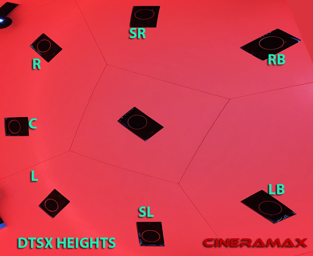 from behind the screen to forward of the screen to satisfy ATMOS, AURO, and DTS ULTRA requirements.