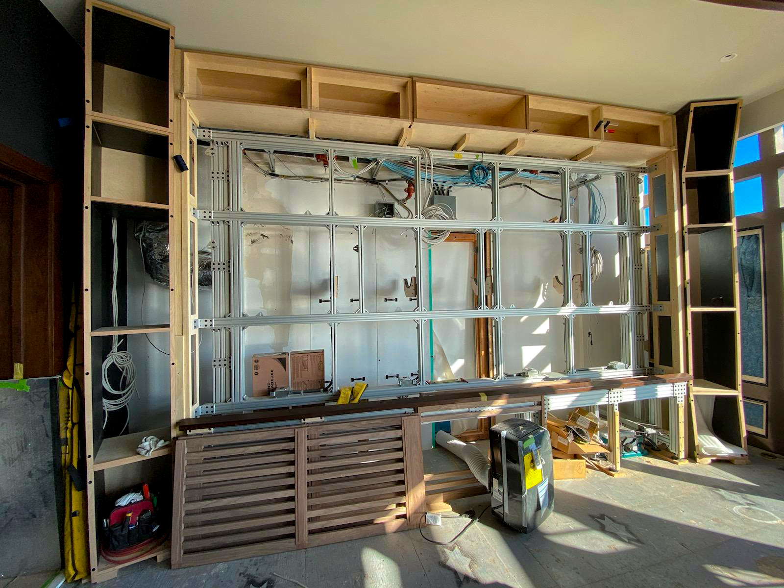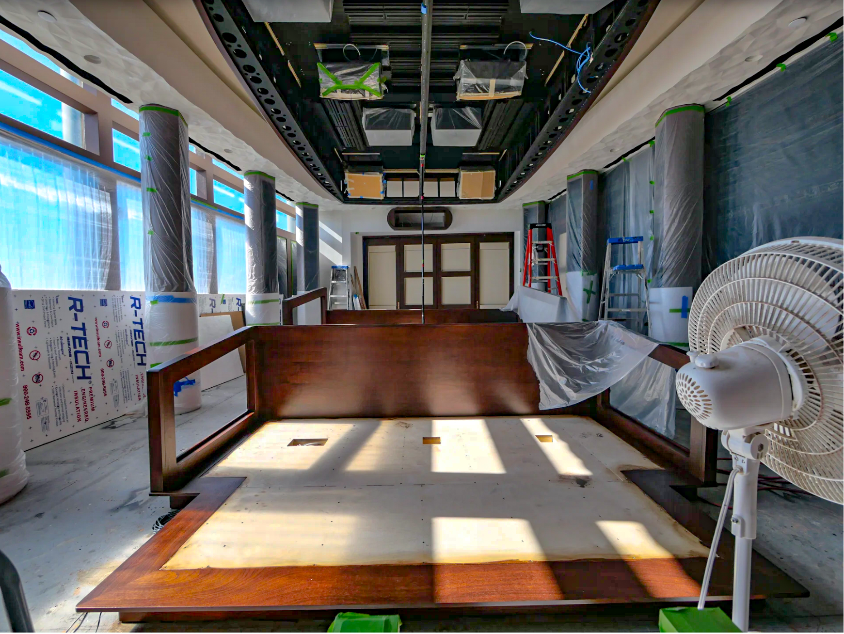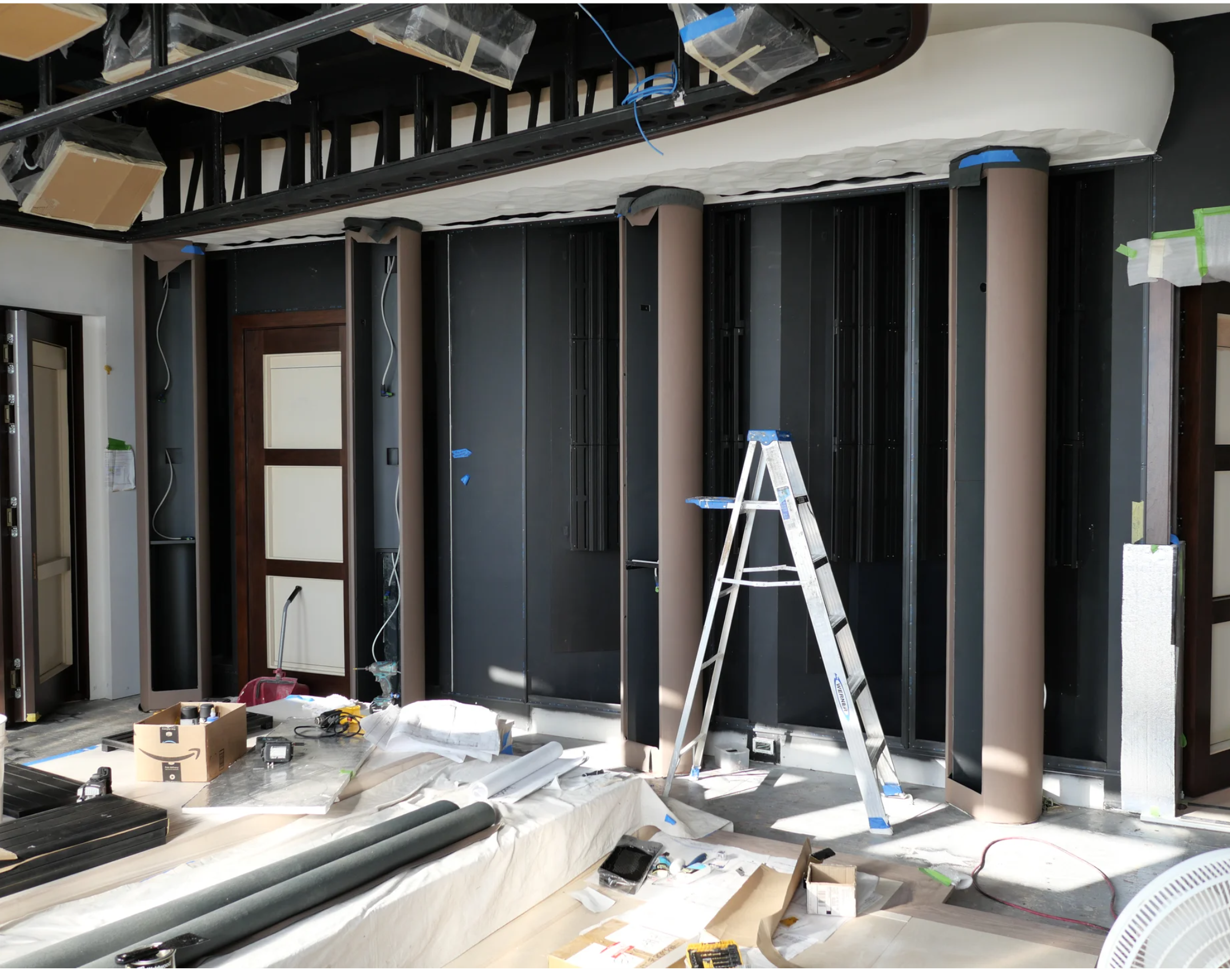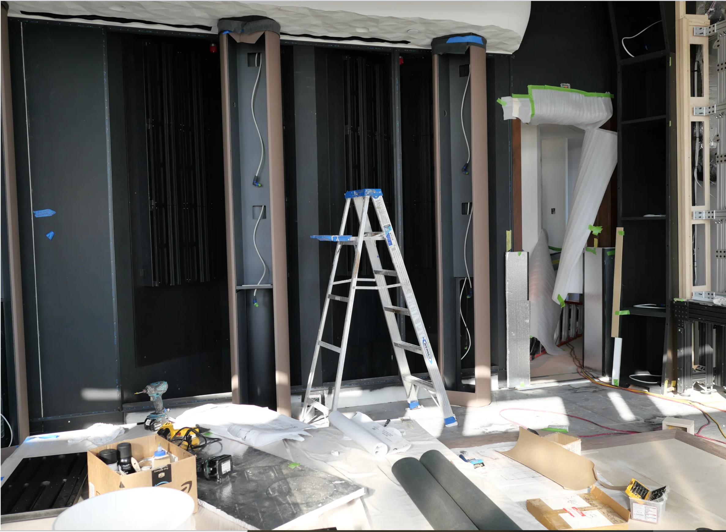 Another bump on the road for the C-LED Installation. The Caustic underwater pattern parquet flooring from Italy missed the steamboat.... C-Led installation pushed out another month  Also Volfgoni 3D was acquired by a Chinese company and the delivery of the active hub rf and rf edge glasses also got delayed till early October. That back area of the room shows the caustic design parquet flooring that is now a holdup.