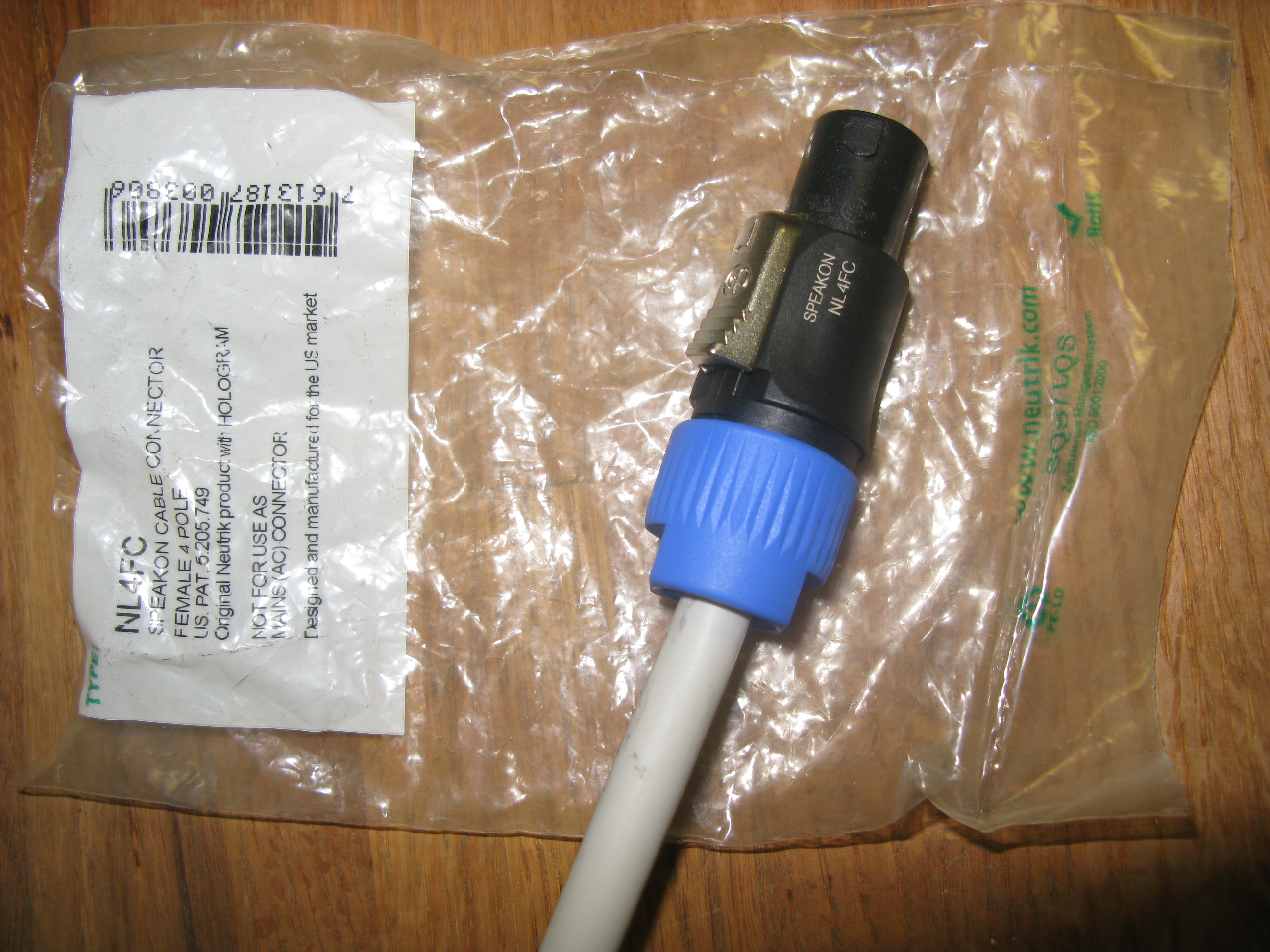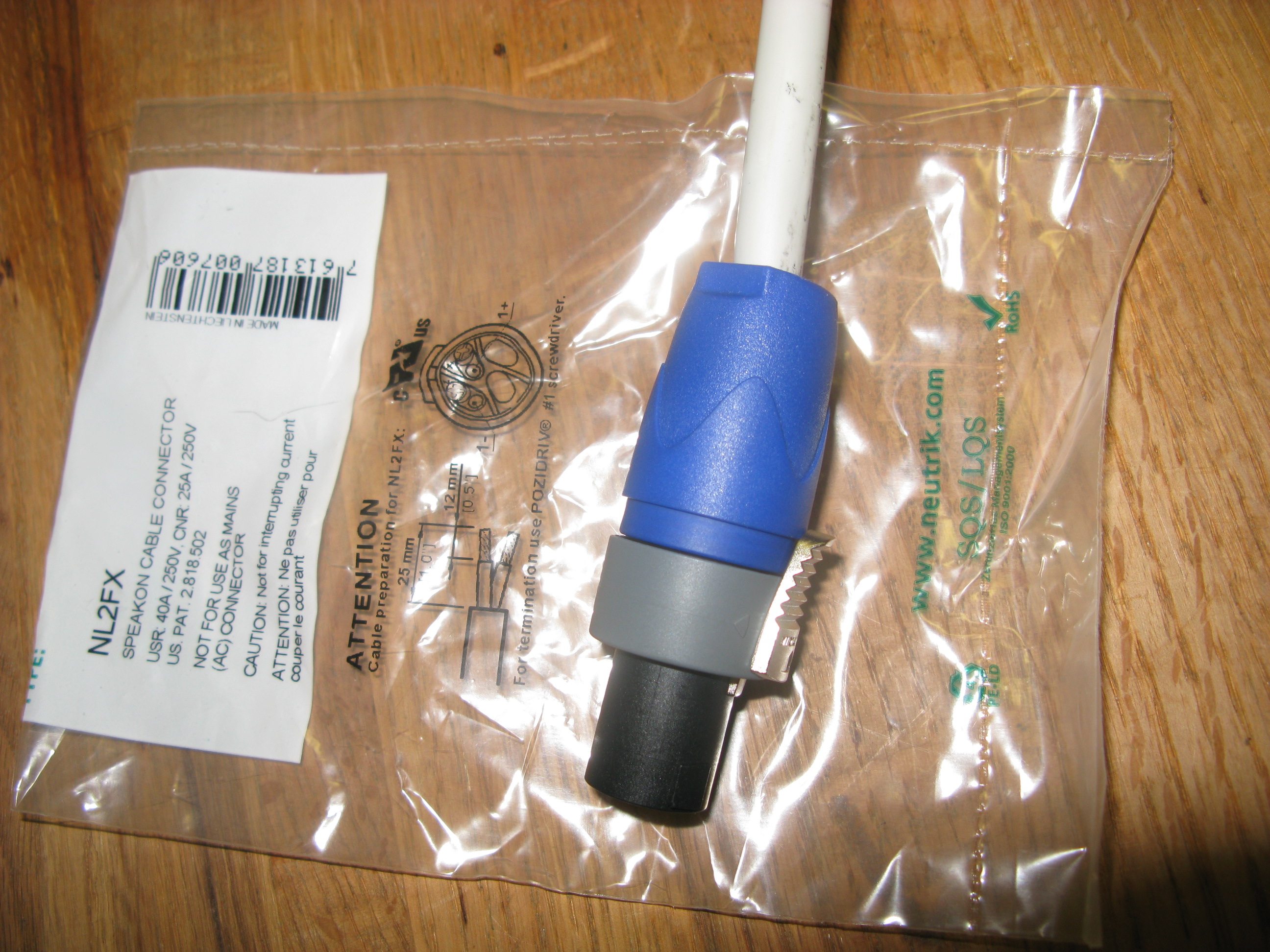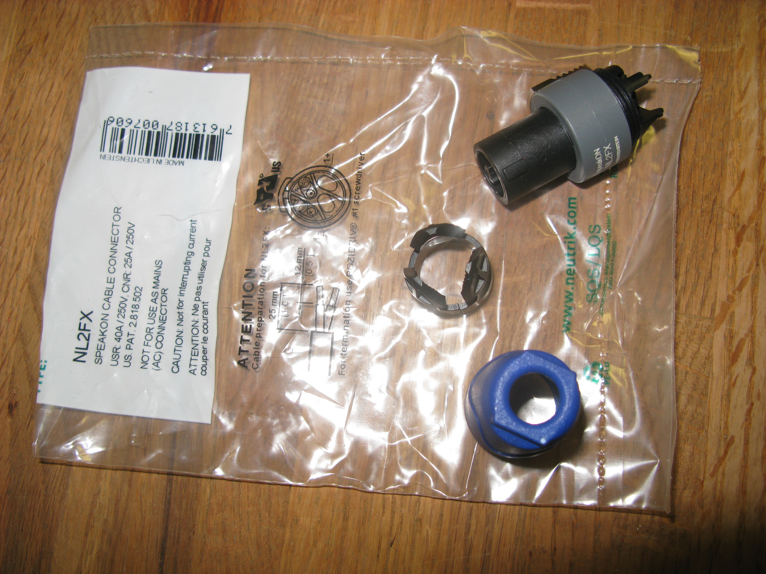 So a week ago my client informed me that the multiroom contractor that prewired the room had stated that my quad 12 speaker cable from Straightwire was too fat to fit the speakons. Not what I wanted to hear so I had to double check the connector part numbers.