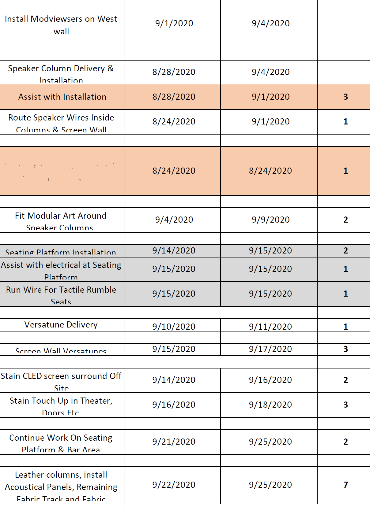 Today we had a 3 hour conference call going over the critical path steps of the installation, C-Led now scheduled for completion 9/15.