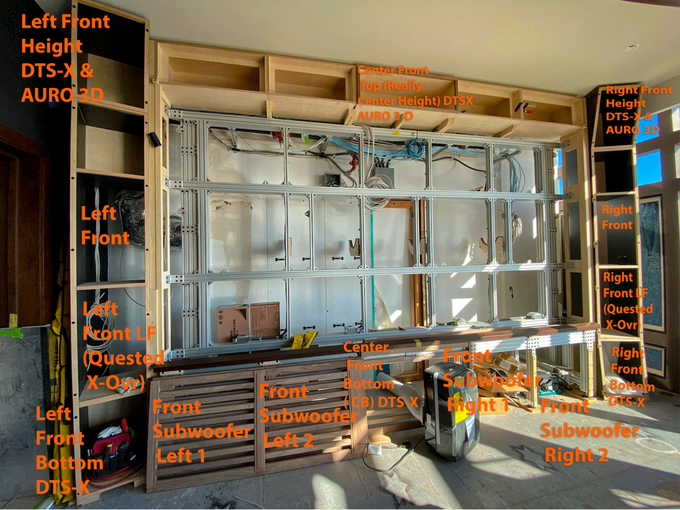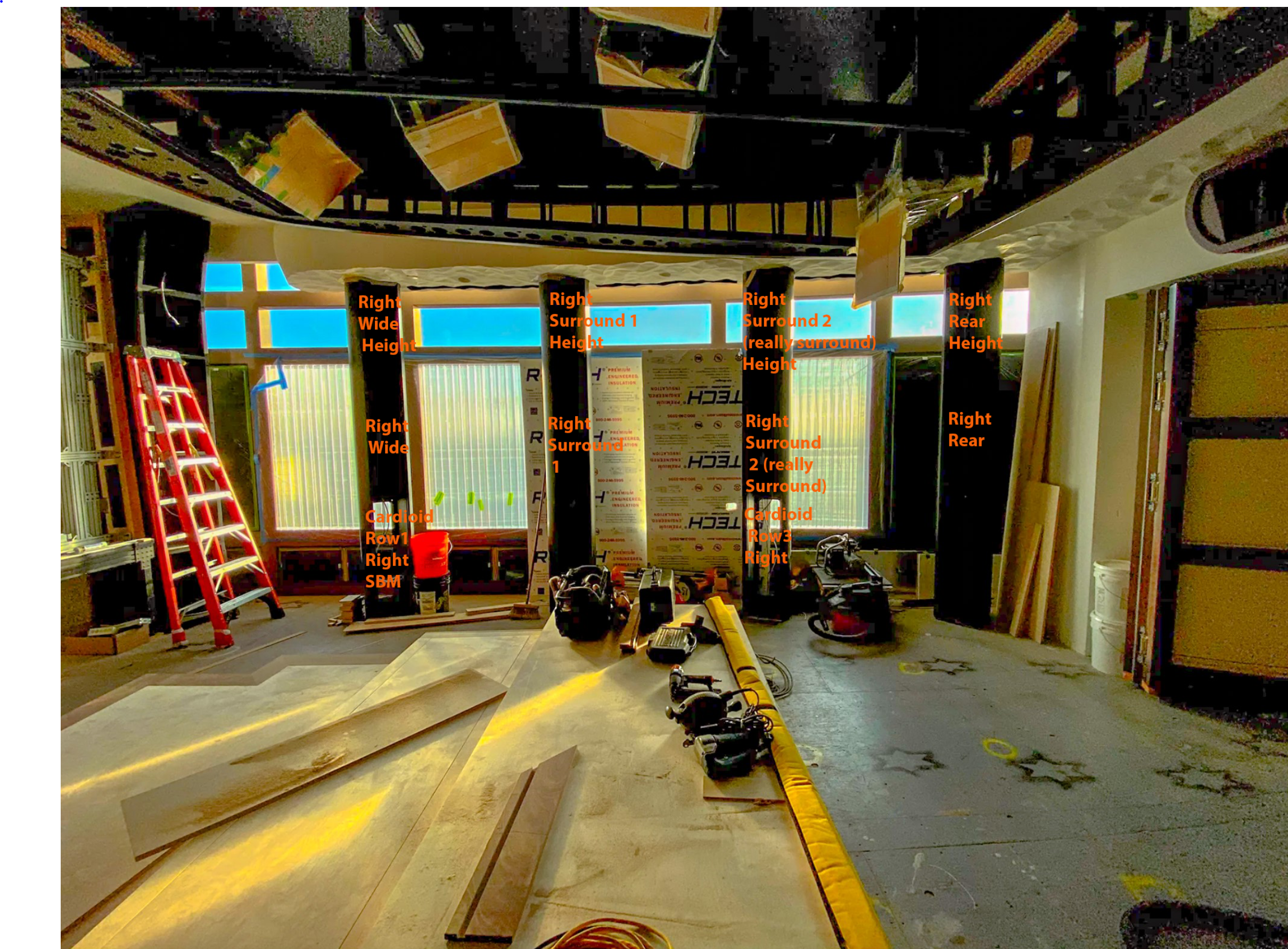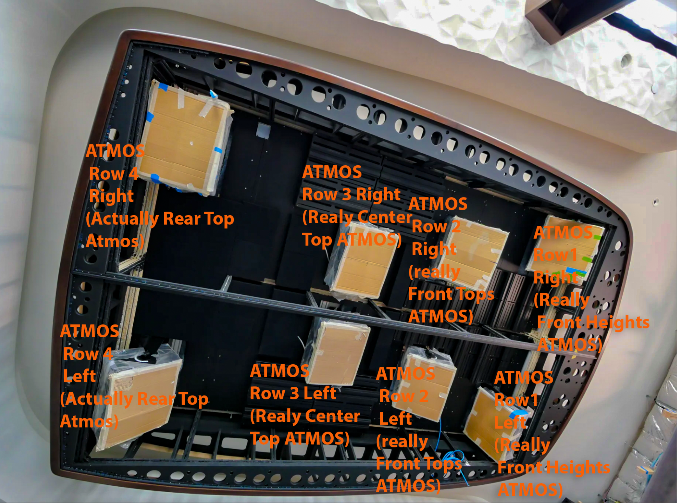 Each speaker has been painstakingly positioned in BIM to half a degree to recreate as best psychoacoustically possible the soundfield 1st experienced in the Gravity ATMOS premiere @ Dolby Burbank but without their claw scratching the blackboard harsh cinema JBL speakers.