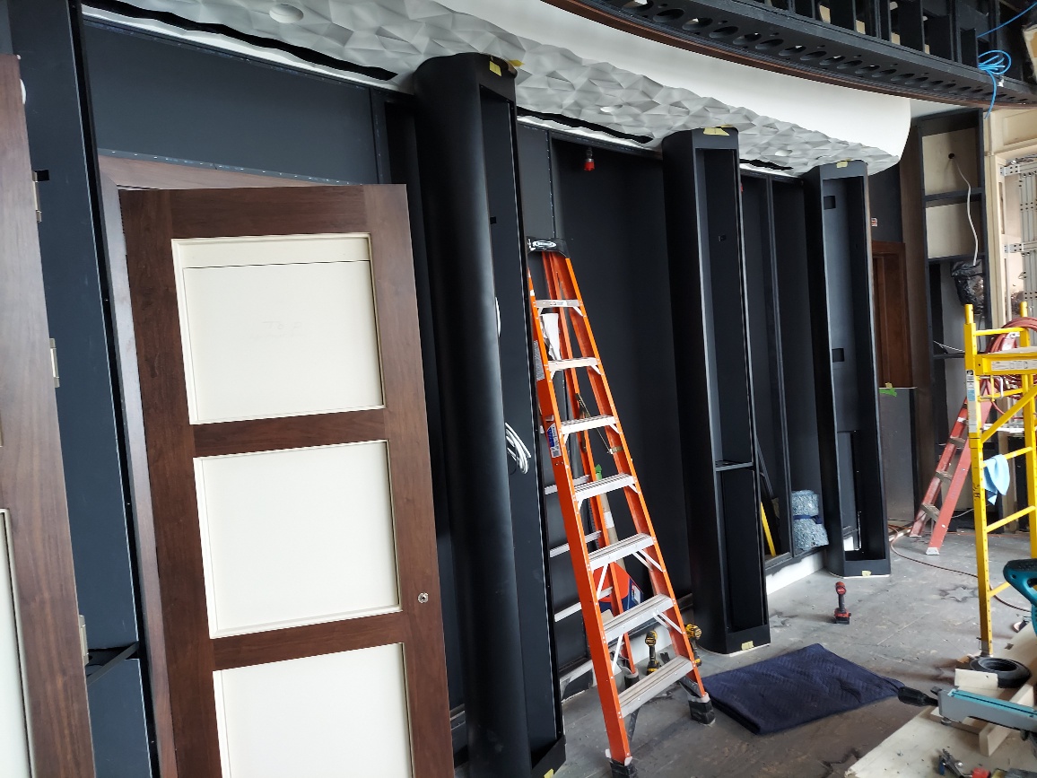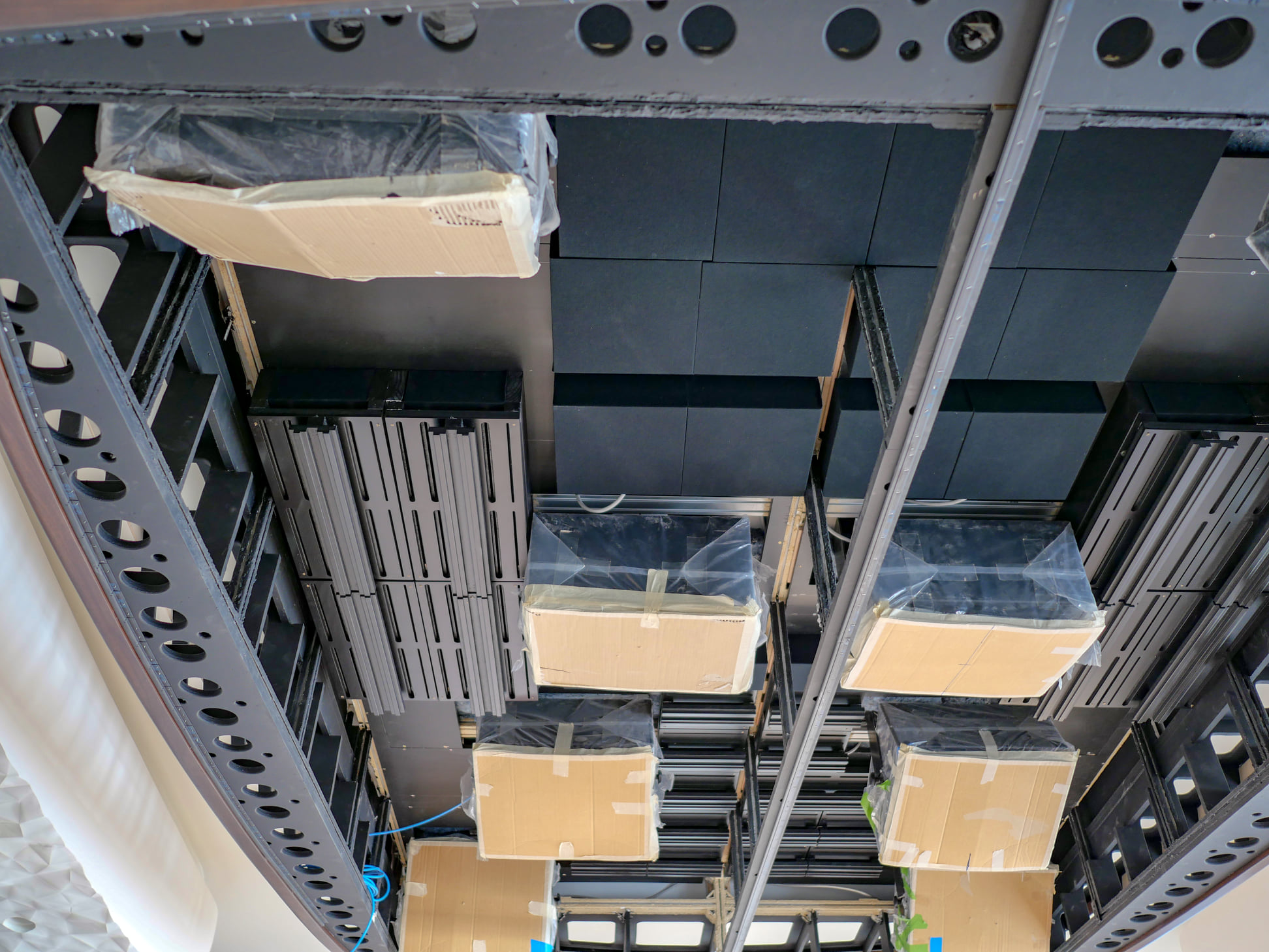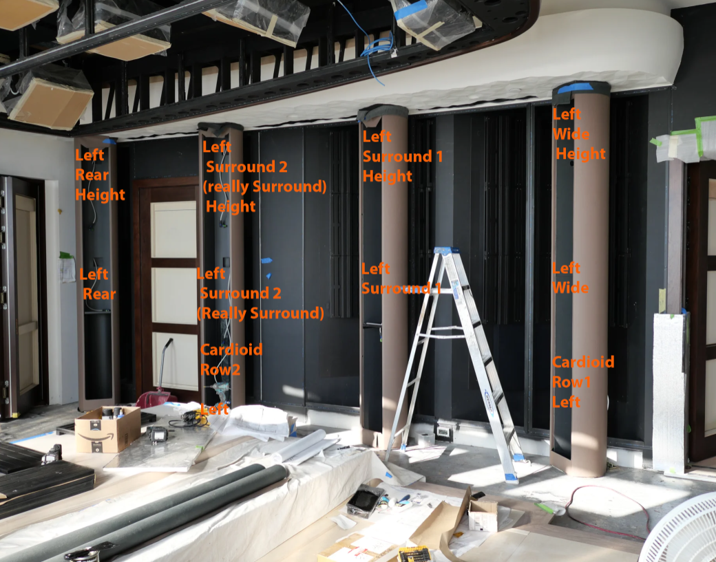 Each speaker has been painstakingly positioned in BIM to half a degree to recreate as best psychoacoustically possible the soundfield 1st experienced in the Gravity ATMOS premiere @ Dolby Burbank but without their claw scratching the blackboard harsh cinema JBL speakers.