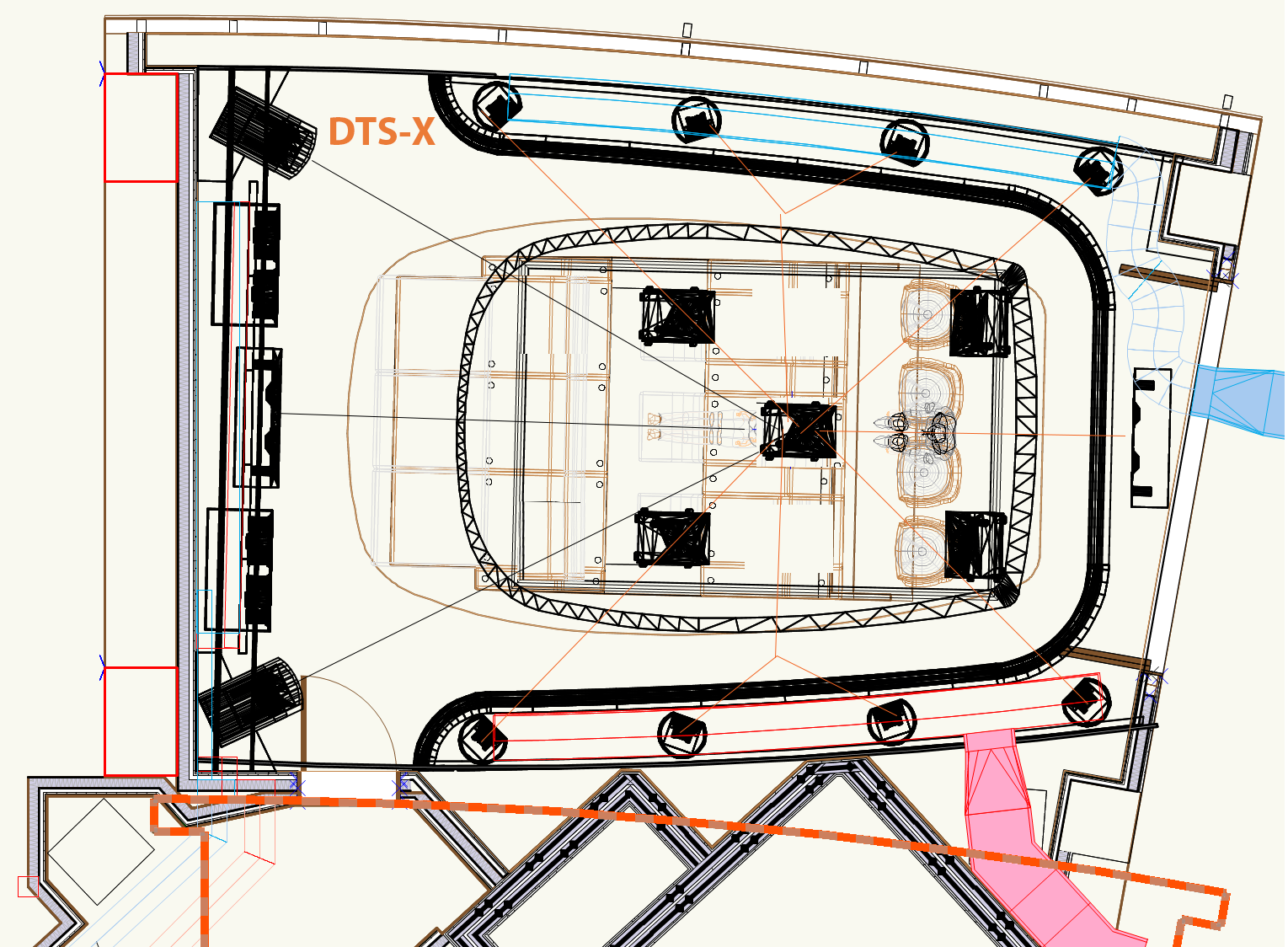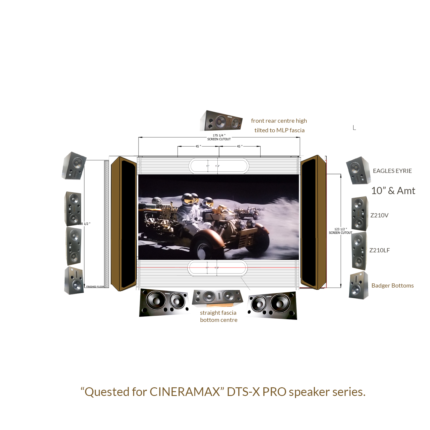 There has been some confusion as to the reasons we designed for DTS-X Pro our first Wallscreen Skylounge. I will attempt to organize all the images and documents here. Also for ATMOS we design for Cinema Tops spacing.